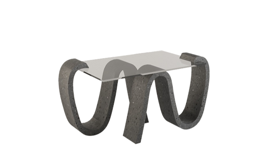 TAVOLO A S IN PIETRA LAVICA E VETRO