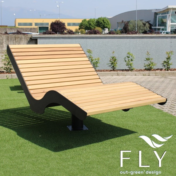 Sdraio girevole – rotante 360 ° Twist L.1200 mm. Panchina/Sdraio dotata di un meccanismo per la rotazione a 360°. Costituita da un telaio principale in acciaio sagomato con tecnologia laser e da una piastra base forata per il fissaggio al suolo; disponibile anche nella versione con piastra base autoportante. La seduta con schienale è formata da doghe in legno di pino nordico sono impregnate in autoclave in conformità alle norme DIN 68800-3 per preservare il legno contro l’attacco di funghi, muffe e agenti atmosferici; a richiesta può essere fornita con legno di pregio. La Panchina/Sdraio può essere realizzata nella versione “singola” con una larghezza di 600 mm o doppia con una larghezza di 1200 mm. Tutte le parti metalliche sono zincate e verniciate a polveri poliestere termoindurenti nelle diverse colorazioni RAL. La viteria è in acciaio inox.