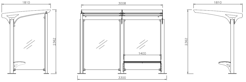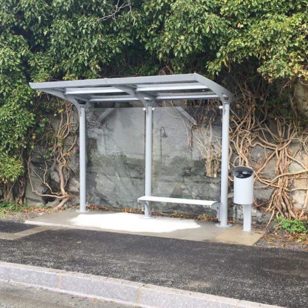 Adatta per il posizionamento lungo marciapiedi dove lo spazio disponibile è ridotto o non sufficiente per una pensilina con 4 sostegni.