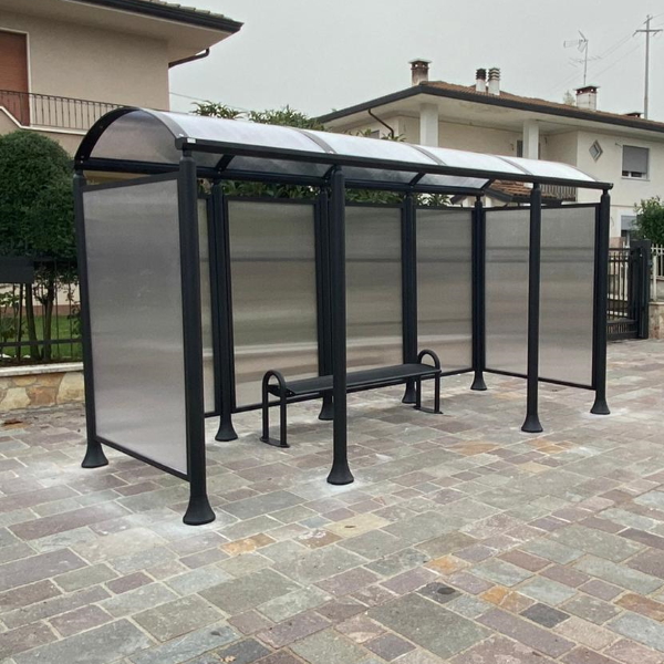 Le pensiline di attesa autobus possono essere di varie forme: a sbalzo o con montanti, con accessori tipo pareti laterali, bacheche o panchine. O di varie dimensioni a seconda delle necessità: se vanno posizionate su marciapiede o su platee realizzate appositamente. Le pensiline presenti nel nostro sito sono solo alcune dei modelli da noi realizzati. Se non trovi il modello adatto alle tue esigenze o vuoi delle modifiche su questo modello non esitare a contattarci!