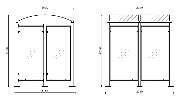 Pensilina Smoking space con parete frontale può essere fornita anche senza parete frontale.