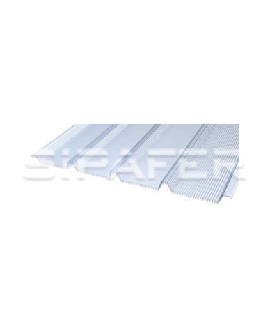 Si utilizza per coperture e lucernari. La struttura in policarbonato assicura un ottimo isolamento termico, un ottima resistenza ai raggi U.V. ed alla grandine. Il particolare disegno del profilo rende il sistema perfettamente sovrapponibile con tutti i tipi di lamiere grecate e pannelli isolanti per copertura. Reazione al fuoco EuroClass B-s1,d0. Colore trasparente.