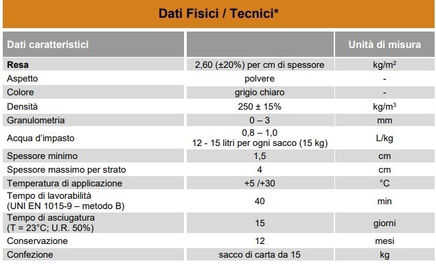 2,60 kg/m2 (±20%) per cm di spessore.