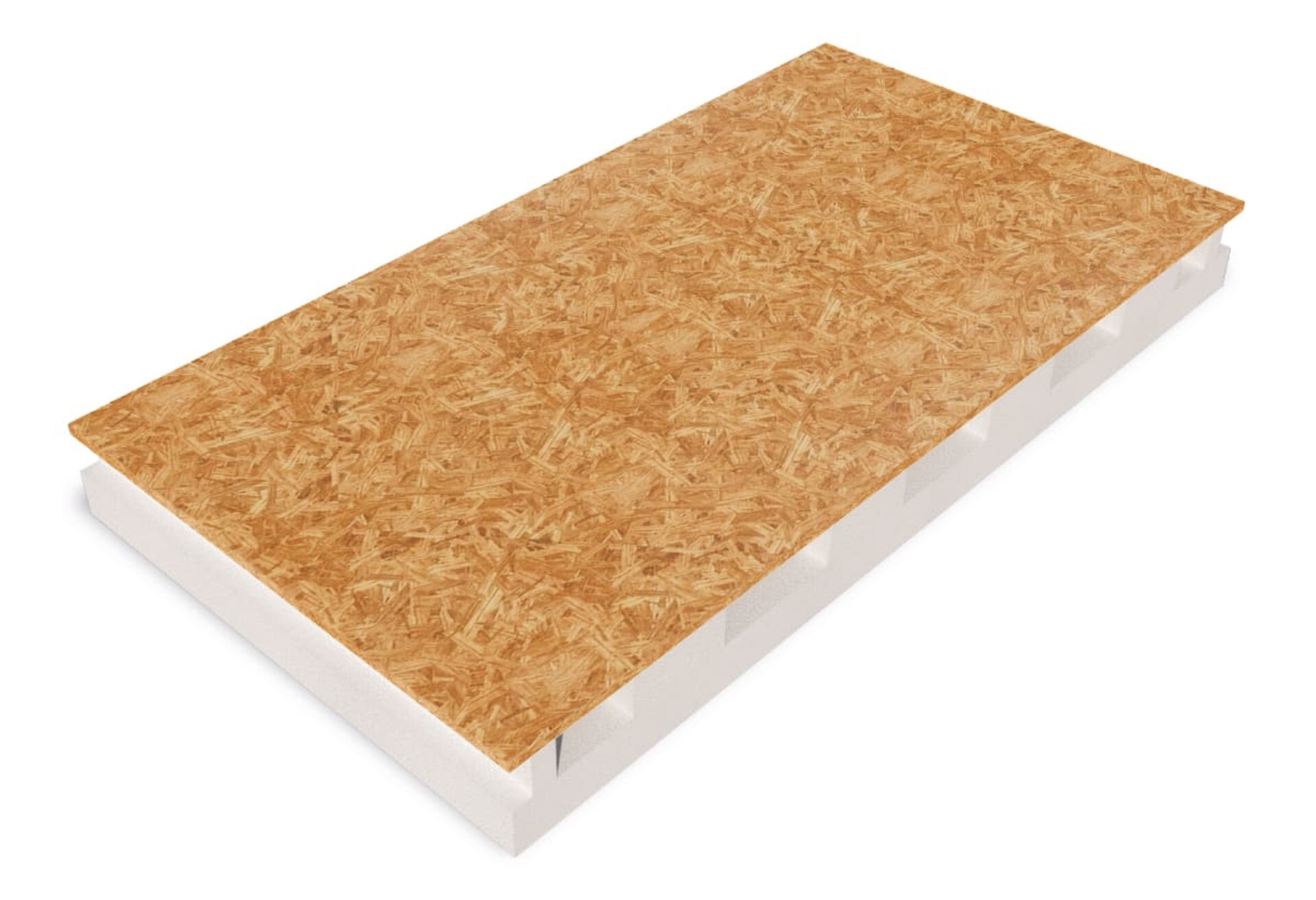 Sistema termoisolante prefabbricato composto da un pannello in polistirene espanso sinterizzato appositamente sagomato con canali di ventilazione sul lato corto, battentato sui due lati corti e accoppiato, nel lato superiore, a pannello in OSB di 12 mm di spessore.