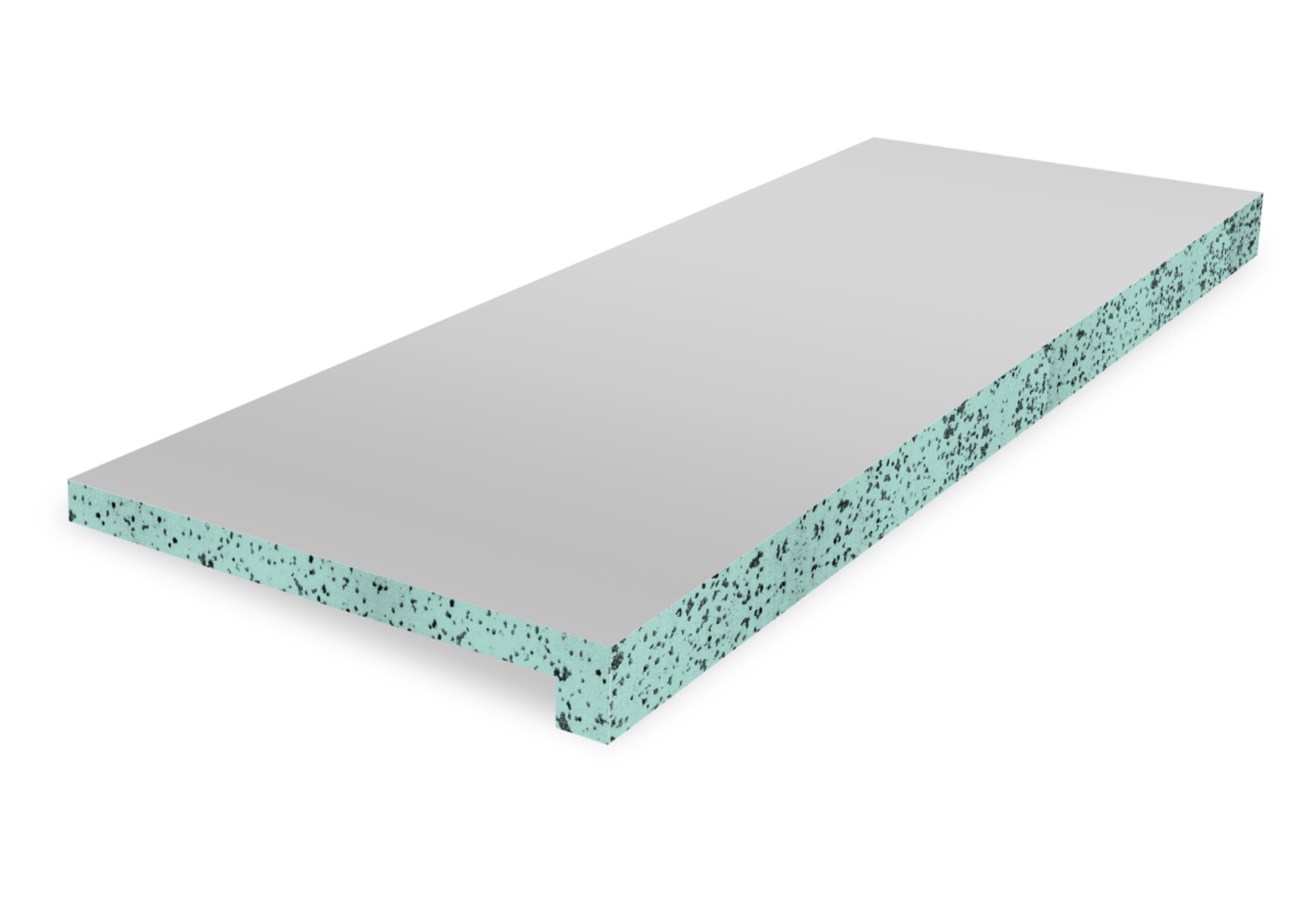 Soglia termica per finestre ed aperture in EPS accoppiato a profilato metallico (lamiera, alluminio o acciaio inox) preverniciato, per l’isolamento dei ponti termici dei davanzali.