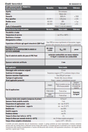 Speciale rivestimento protettivo monocomponente a base di polimeri in dispersione acquosa, pigmenti resistenti ai raggi UV, additivi per migliorare la lavorabilità e speciali composti inorganici atossici che conferiscono al prodotto un’azione antifiamma. Si usa per conferire un’azione antifiamma e contemporaneamente protettiva, di manufatti vari (legno, calcestruzzo…), di coperture in EPS, poliuretano o membrane bitume-polimero, sia nuove che già esistenti.