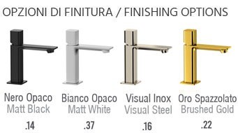OPZIONI DI FINITURA: Cromato, Nero Opaco (.14), Bianco Opaco (.37), Visual Inox (.16), Oro Spazzolato (.22).