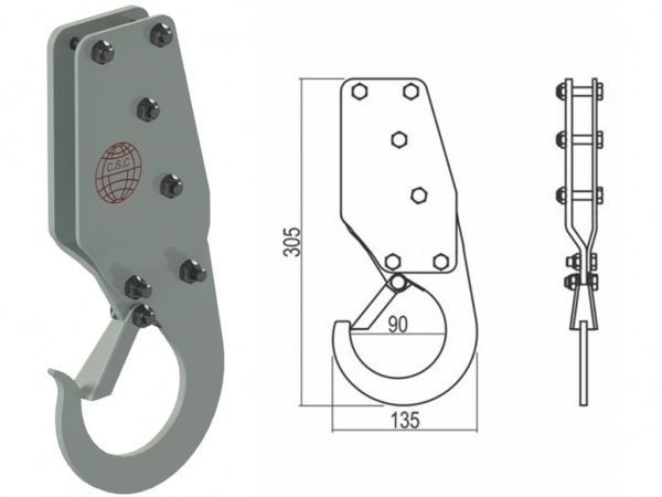 Gancio con sistema autobloccante della fune. Portata 50 Kg Peso 2.00 Kg Zincato