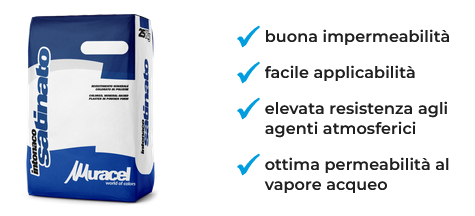 Intonaco a base minerale per applicazioni a mano, costituito da calce, cemento, sabbie silicee, pigmenti inorganici stabili agli U.V., additivi e idrofughi. Utilizzabile sia all’esterno che per interno. Caratterizzato da una discreta idrorepellenza e ritenzione del colore, buona resistenza all’abrasione e allo sfregamento, adatto per la protezione delle facciate e per le loro rifiniture.
