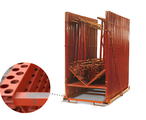 Il contenitore standard per ponteggio 50/60 telai è progettato per garantire uno stoccaggio sicuro, ordinato ed efficiente dei telai da ponteggio all’interno del cantiere o durante il trasporto. Realizzato in acciaio resistente, consente di contenere fino a 50 o 60 telai, ottimizzando gli spazi e migliorando la gestione del materiale edile. La struttura rinforzata assicura stabilità e facilità di movimentazione tramite carrello elevatore o mezzi da cantiere. Ideale per imprese edili che operano su più cantieri, questo contenitore permette di ridurre tempi di carico e scarico, migliorando l’organizzazione del lavoro. Disponibile per la vendita ponteggi a Catania e provincia, rappresenta una soluzione professionale per lo stoccaggio di ponteggi modulari in totale sicurezza.