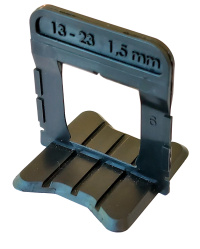 La basetta ZERO23 consente di livellare piastrelle e lastre in marmo da interni di spessore da 13mm a 23mm e incorpora distanziatori per fughe da 0,5mm o 1.5mm.