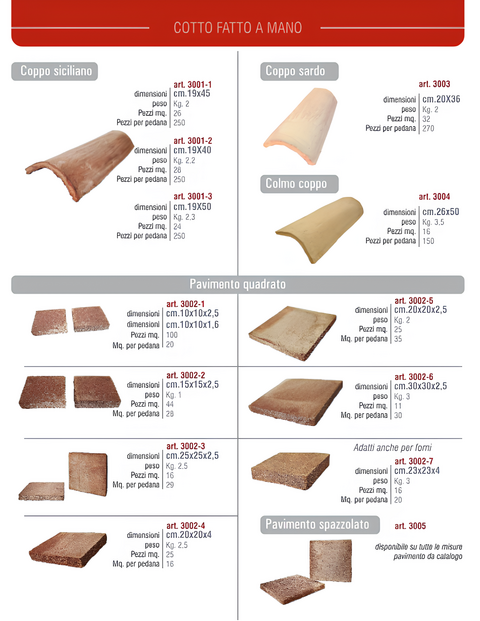 Il coppo siciliano in cotto fatto a mano è un elemento tradizionale utilizzato per la realizzazione di coperture tipiche dell’architettura mediterranea. Ogni pezzo viene realizzato artigianalmente con argille naturali e cotto ad alte temperature, garantendo resistenza, durabilità e un aspetto autentico.