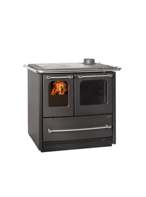 La struttura solida e curata nei dettagli è realizzata con focolare in ghisa, facciata e telaio in ghisa smaltata e porte in acciaio smaltato, materiali che assicurano resistenza, durata nel tempo e un’estetica elegante e intramontabile. La piastra e i cerchi in ghisa levigata completano la cucina con qualità e robustezza, rendendola ideale anche per un utilizzo quotidiano. La gestione è semplice e pratica grazie al cassetto cenere estraibile e al cassettone porta legna, pensati per mantenere ordine e comodità durante l’utilizzo.