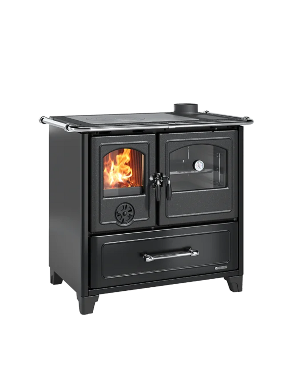 Pensata anche per facilitare installazione e manutenzione, FAMILY VST offre uscita fumi superiore lato destro e piedini per una pulizia più semplice sotto la struttura. FAMILY VST è la scelta perfetta per chi cerca una stufa a legna con forno efficiente, robusta e di grande fascino, capace di riscaldare con stile e rendere l’ambiente ancora più accogliente.