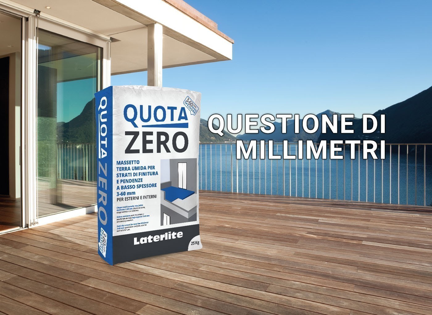 QUOTAZERO è il massetto di finitura per la posa per interni ed esterni a basso spessore da 3 a 60 mm adatto a ricevere la posa diretta di pavimenti incollati (anche sensibili all’umidità) e strati impermeabilizzanti (sia membrane prefabbricate che liquide).