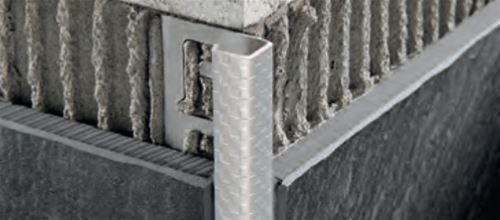 PROJOLLY SQUARE è un profilo angolare squadrato in acciaio inox AISI 304 / 1.4301 – V2A, di altezza 8, 10, 11 e 12.5 mm, disponibile con superficie a quadratini di lato 2,5 mm in rilievo o con effetto cuoio. Il profilo è dotato di una aletta traforata che ne garantisce una perfetto ancoraggio con l’adesivo impiegato. Questa elevata gamma di finiture, combinata alla disponibilità in diverse altezze e dei pezzi speciali quali capsule interne, esterne e tappi di chiusura, rendono PROJOLLY SQUARE un profilo molto elegante ed apprezzato