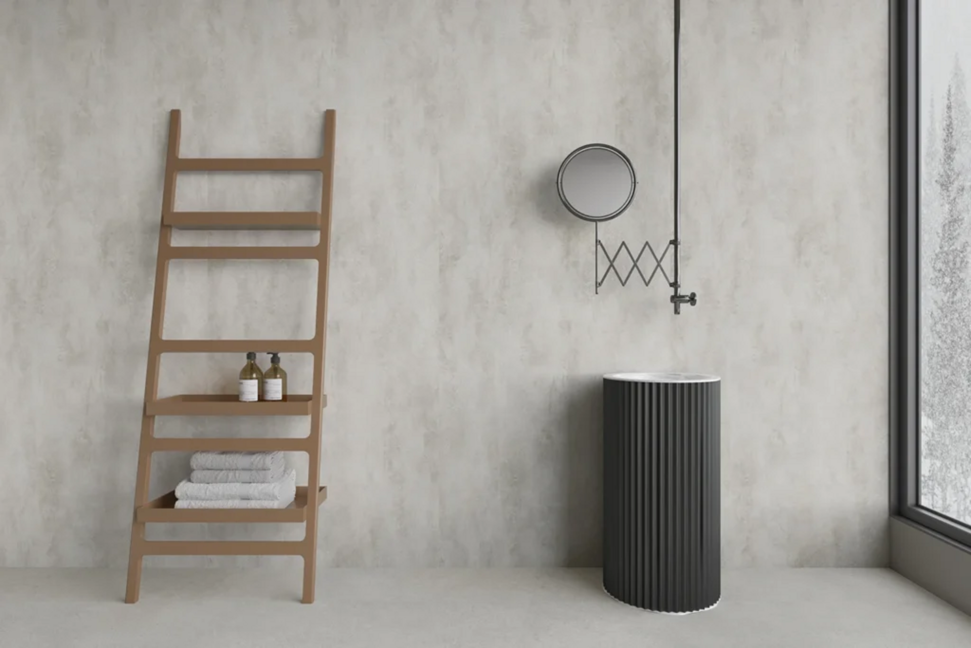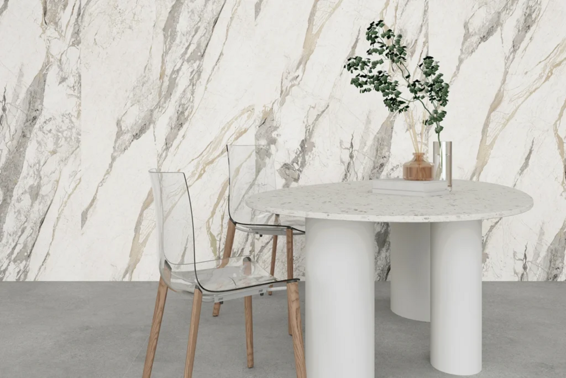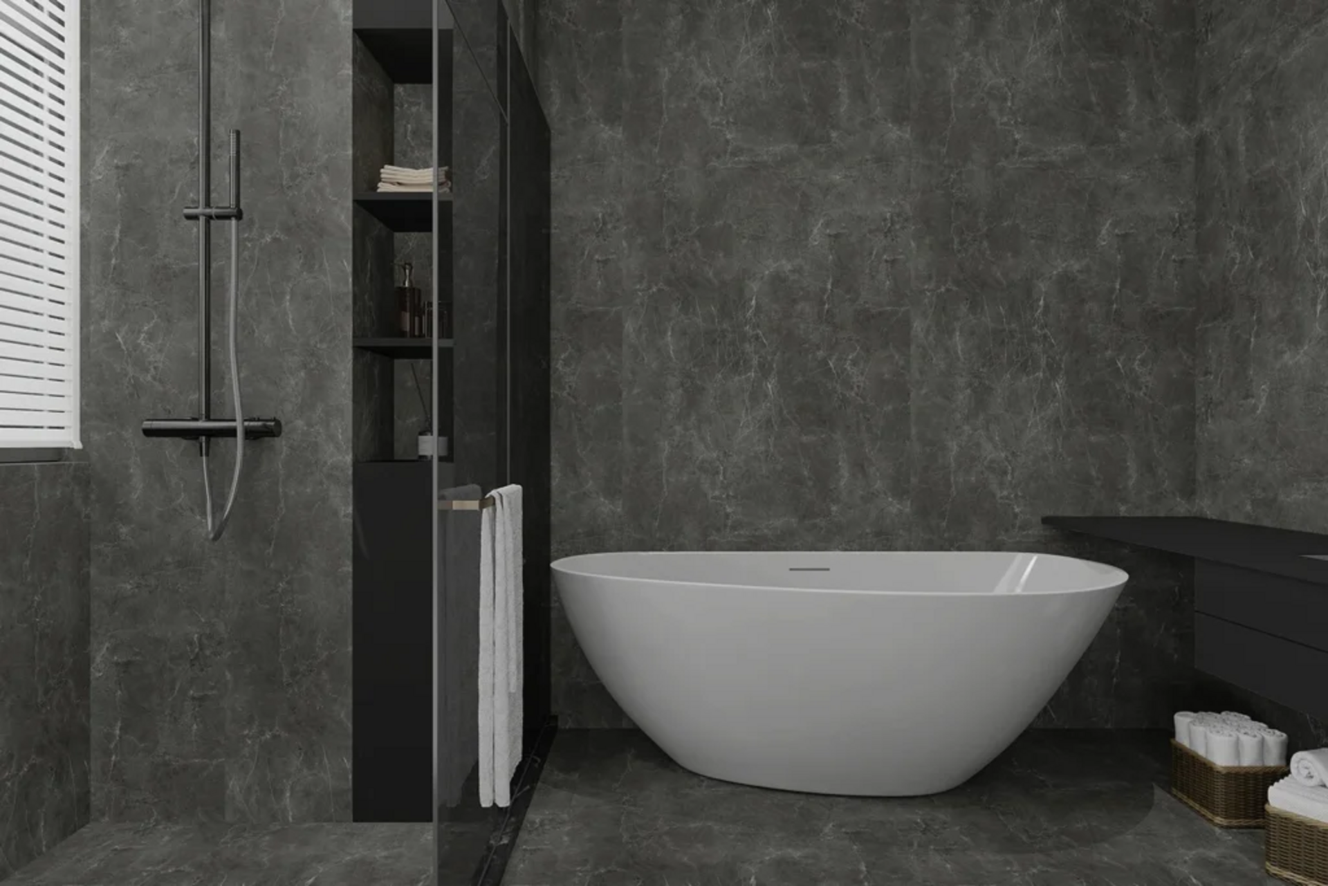La collezione propone diverse finiture effetto pietra, cemento e legno, pensate per integrarsi perfettamente negli ambienti moderni. Le superfici riproducono fedelmente i materiali naturali, donando carattere e personalità agli spazi senza rinunciare alla praticità.