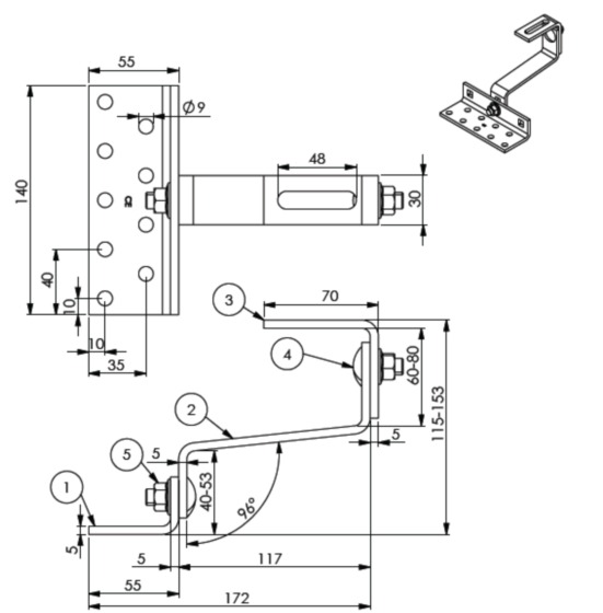 Staffa regolabile In acciaio inox A2 per la realizzazione di struttura modulare sulla quale installare i moduli fotovoltaici